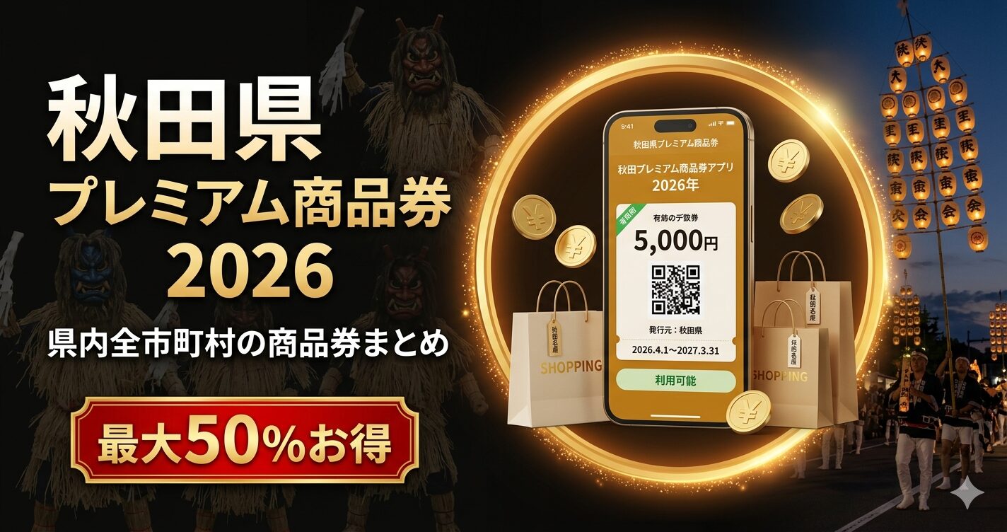この記事では、2026年に秋田県内で利用できるプレミアム商品券を一覧でまとめ、それぞれの使える店(具体的な加盟店名)・申込方法・家族で使った場合のシミュレーションまで網羅しました。お買い物をお得にしたい方はぜひ最後まで読んでみてください。