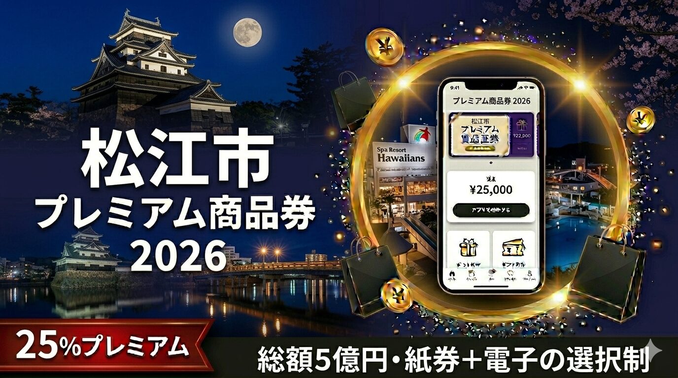 「松江市のプレミアム商品券、今年はどうなるの?」「紙券と電子どちらを選ぶべき?」「どのお店で使えるの?」そんな疑問をお持ちの松江市民の方へ。2026年版の最新情報をわかりやすく解説します。