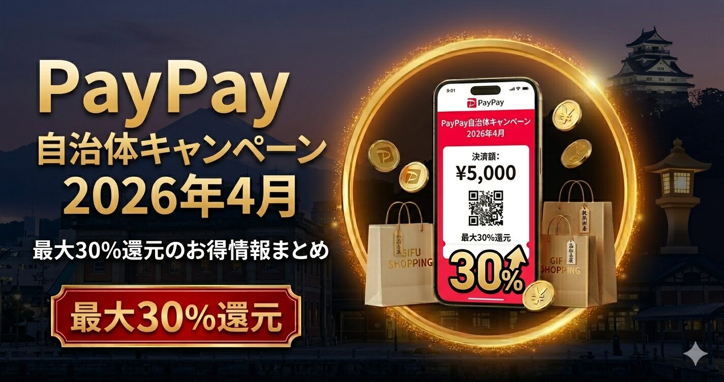 この記事では、2026年4月に開催中・開催予定のPayPay自治体キャンペーンを一覧でまとめています。さらに5月以降に開始予定のキャンペーンや、お得に使うための具体的なテクニックも紹介します。お住まいの地域や旅行先が対象になっていないか、ぜひチェックしてみてください。