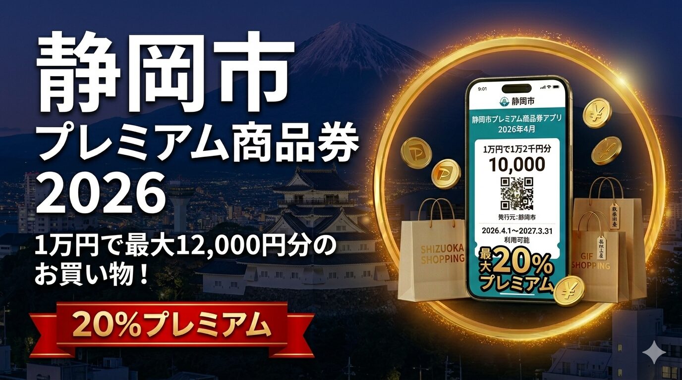 2026年4月、静岡市でプレミアム率100%の「しずトク商品券」第3弾がスタートしました。5,000円で10,000円分のお買い物ができる、静岡市民にとって見逃せない制度です。